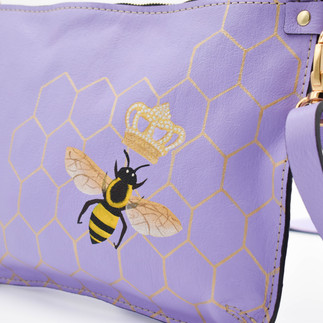 Anyway, a couple of months ago I made an announcement that I would be retiring this "Queen Bee" bag, and you all wasted NO time getting your last minute orders in. I initially made this bag in cream but y'all did not hold back and getting creative with the colors this last time around. With the "Queen Bee" now FULLY RETIRED, the last bag I painted in this series was this lavender. No one requested it, I just wanted to satisfy what was in my imagination. If you'd like to claim this one of a kind lavender "Queen Bee" Big Marlena bag with the matching crossbody strap.....CLICK HERE!